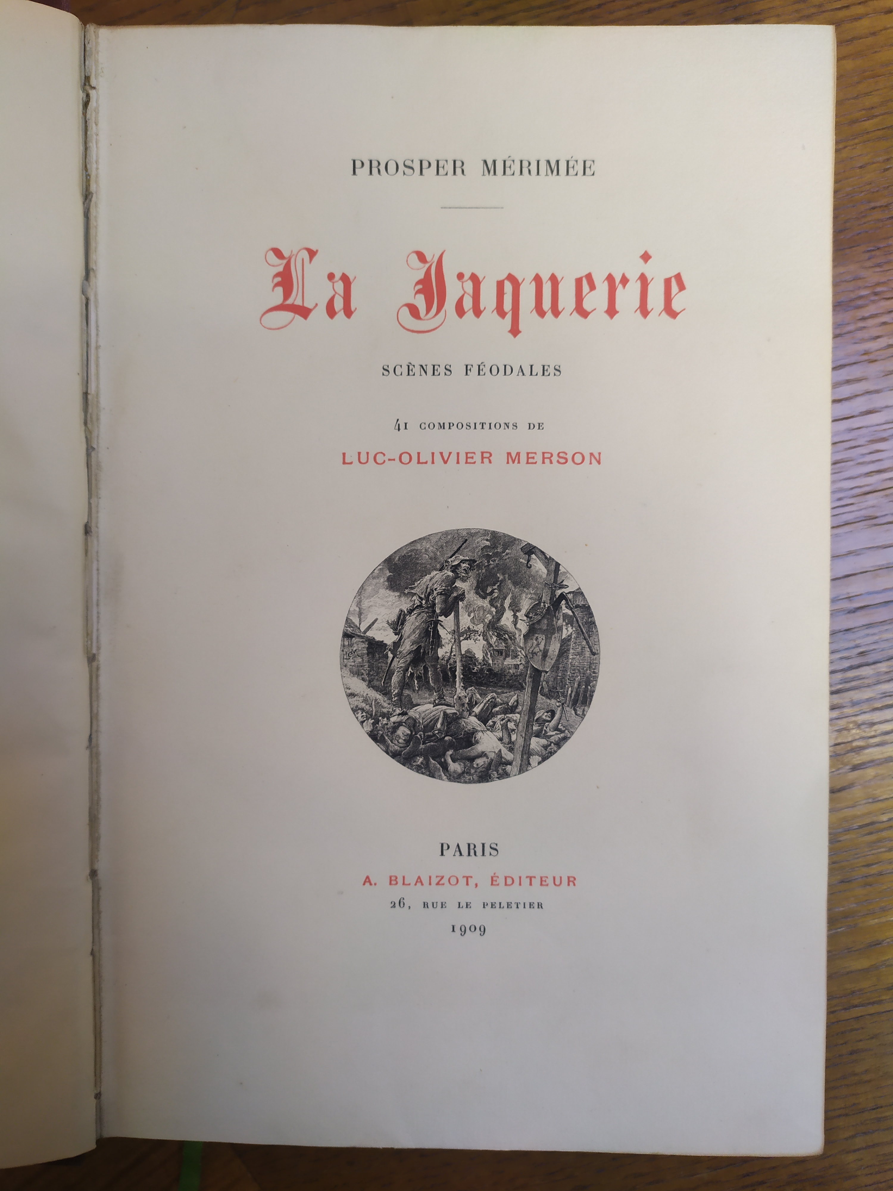Paris, collection Le Livre moderne illustré, J. Ferenczi & fils éditeurs, 1927. Couverture souple, imprimée à l’encre rouge et noir. Format in-octavo. 159 pages. Broché. Petits manques, laissant apparaître les cahiers, en tête et en queue du dos. Dos bruni, sinon bon exemplaire de ce livre fragile. Bois gravés de Clément SERVEAU, illustrateur chez le même éditeur et dans la même collection du Voyage de Céline qui connaissait ici sa première édition illustrée.