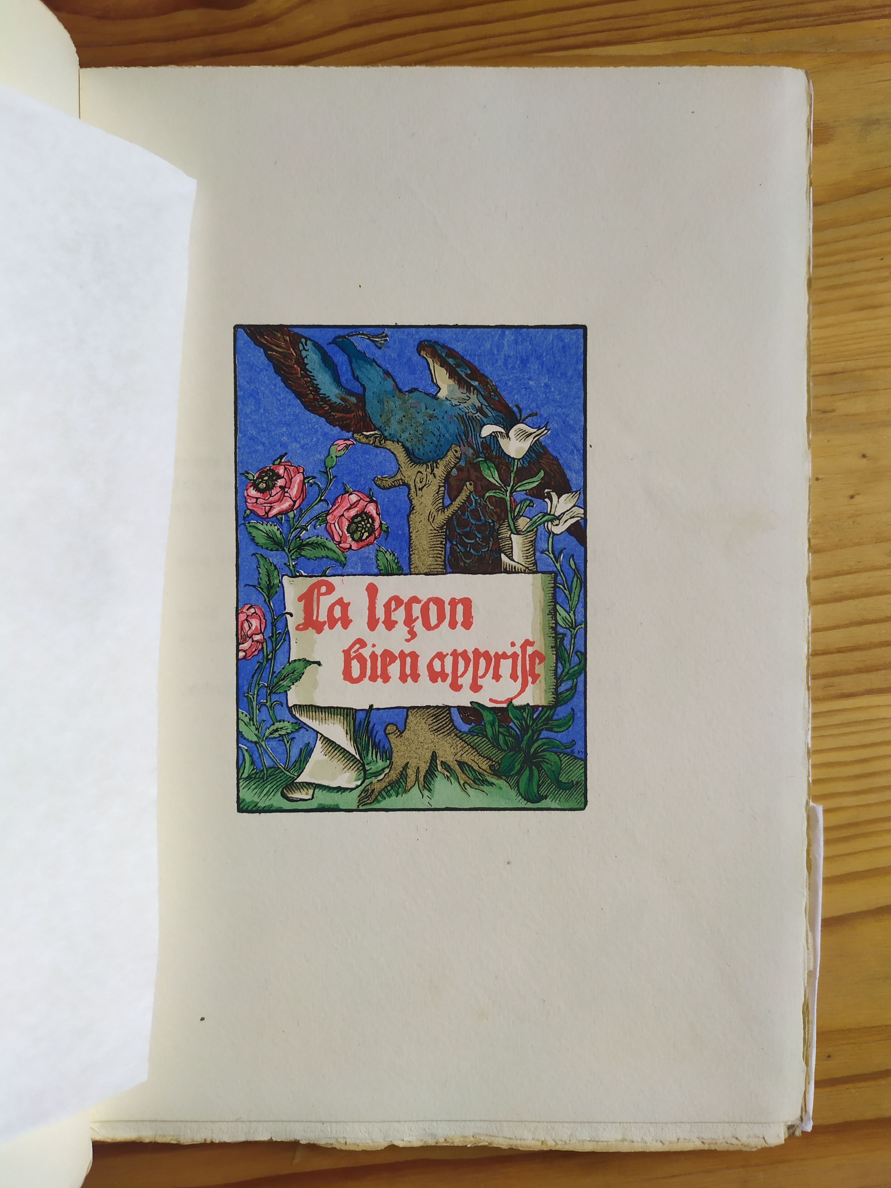Cette édition datée de la Libération d'un texte patriotique de l'historien Jules Michelet (elle en constitue l'édition originale) est parfaitement exécutée ‎par la Compagnie française des arts graphiques, à 1000 exemplaires d'un tirage unique, strictement limité et justifié, tous sur papier Berzélius de France (le papier qui Flaubert considérait comme le meilleur).