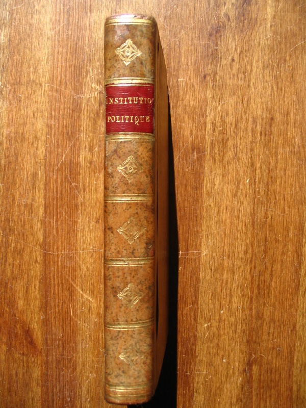 La onzième édition de l’essai désormais classique sur le destin des civilisations par Constantin-François de Chassebœuf, Comte de Volney (1757-1820), qui a paru en 1791 et qui comprend ici à la suite et du même, le traité intitulé La loi naturelle. Publié chez Bossange Frères, à Paris, en 1822, l’ouvrage est illustré de gravures (4 planches au total, dont un portrait en frontispice, la page de faux-titre entièrement gravée et ornée d’une vignette, une planche légendée « Ici courit jadis une ville opulente, ici ......... » (méditations devant les ruines de Palmyre) et deux cartes dépliantes (un planisphère de l’ancien monde et un tableau du ciel des anciens). L’œuvre fit partie des textes philosophiques proscrits.