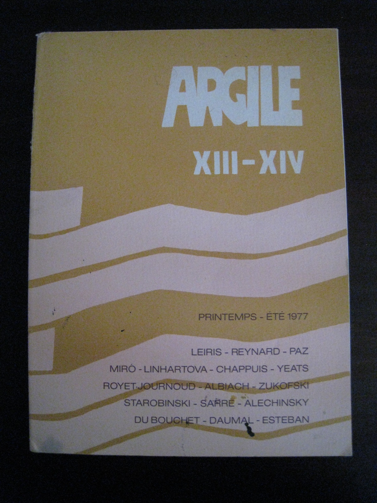 «J’aimerais rappeler aussi, de mon côté, quel fut le rôle d’Esteban dans l’histoire de la poésie des années 70, comme rassembleur et découvreur de puissantes paroles qu’ont recueillies les vingt-quatre numéros de la revue Argile, dont il fut le directeur, depuis l’hiver 1973 jusqu’à la dernière livraison du printemps 1981 dont le sommaire comportait, entre autres, un hommage à Christian Dotremont. J’ai là sous mes yeux la presque totalité de cette collection, publiée par les soins de Maeght Éditeur, avec cette belle et sobre couverture de Raoul Ubac dont seule la couleur changeait à chaque fois. Le secrétaire de rédaction fut jusqu’à la fin Jean-Claude Schneider, que rejoignit, dès 1978, Noëlle Réveillaud. Argile est un exemple magnifique de ce qu’une revue de poésie peut révéler, non seulement de l’activité de la poésie à une époque, mais, plus largement, de la vie culturelle et artistique de cette époque, de ses obsessions et de ses ressources, comme aussi bien du rapport étroit que la création poétique entretient avec les autres arts : la peinture, la philosophie, en particulier, ainsi qu’avec le domaine étranger. C’est dans Argile, par exemple, que j’ai lu mes premiers textes de Mandelstam, de Linhartova, de Silvia Plath, de Quasimodo, de Walser… Comme aussi bien de Guez-Ricord, de Jean-Luc Nancy ou d’Anne-Marie Albiach…» Jean-Marie Barnaud.