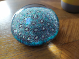Grand sulfur ancien Millefiori de Murano (vingtième siècle). Tons bleus dominants, et forme aplatie. Idéal pour servir de presse-papiers.