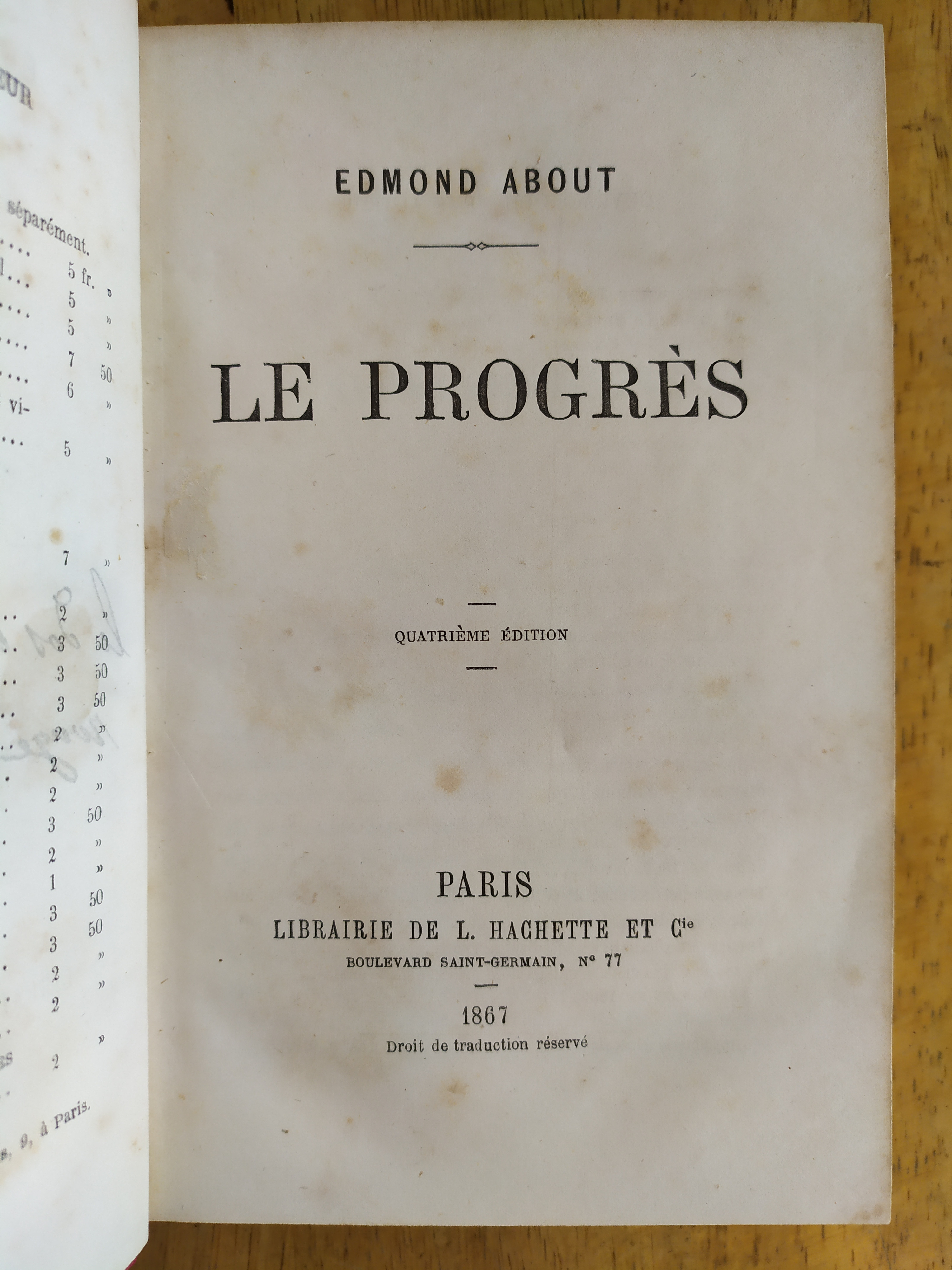 Les "Contes fantastiques" traduits par X. Marmier, précédés d'une notice par le traducteur. Nouvelle édition, augmentée d'une étude sur les contes fantastiques d'Hoffmann par Théophile Gautier. Cette traduction sera rééditée plusieurs fois au dix-neuvième siècle.