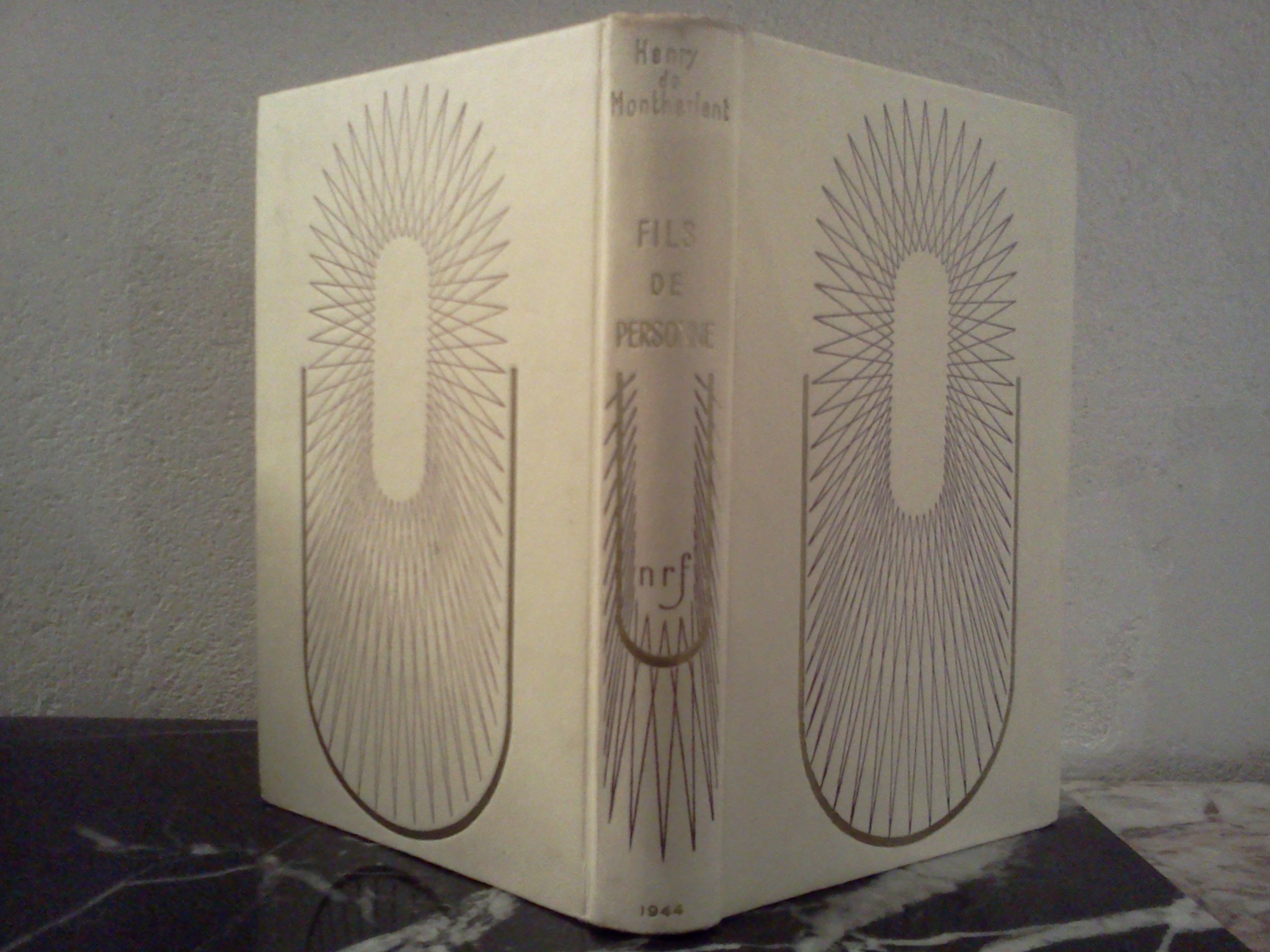 Alcools de Guillaume Apollinaire, recueil de poèmes dont la première édition a paru en 1913. La recomposition datée de 1954 a bénéficié d’un tirage limité à 4110 exemplaires. Le cartonnage de l’éditeur des tirages précédents a été remplacé par une reliure en pleine toile, plus résistante, mais reprenant la maquette et le décor original conçus par Paul Bonet en 1944. C’est la troisième réimpression de ce livre sous cette présentation (avec d’infimes différences), la première datant de 1944 et la deuxième de 1947. Cf. Huret, 15c.
