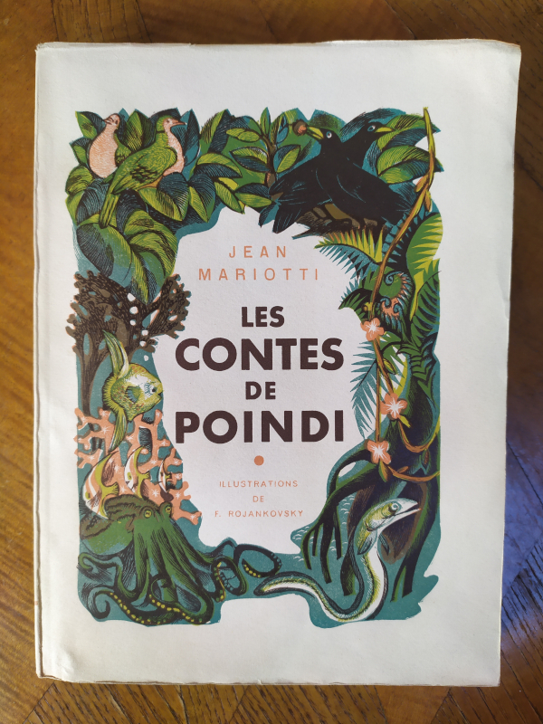 Édition illustrée d’un deuxième recueil de contes de Nouvelle Calédonie, collectés et mis par écrit par Jean Mariotti, avec de nombreuses reproductions de dessins en noir de V. Nechoumoff (qui succède à F. Rojankovsky, quant à lui illustrateur du volume précédent intitulé simplement Contes de Poindi.